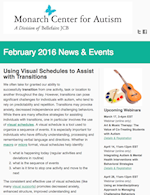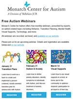 Monarch Center for Autism distributes e-newsletters to more than 18,000 members of the autism community worldwide. To subscribe to receive these e-newsletters, please fill out the form below. Archived e-newsletters, which contain visual supports, recommended resources, tips, tricks, and upcoming events, are available below.